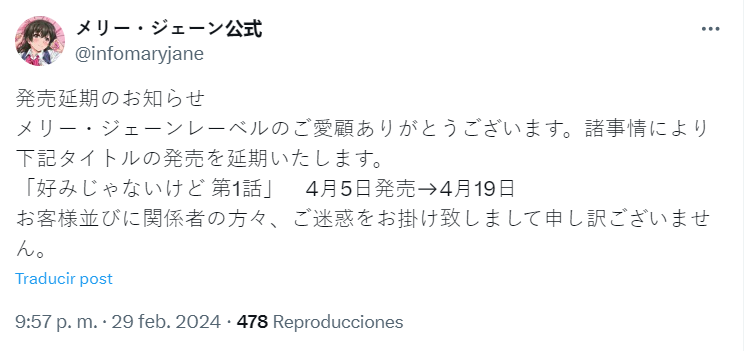 Konomi ja Nai kedo Hentai Will Be Delayed